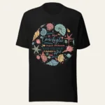 Maglietta unisex . Conchiglie. Ispirata al brano omonimo di Andrea Laszlo De Simone dall’album “Immensità“: una’esplorazione poetica di temi esistenziali come la transitorietà della vita, la fugacità del tempo, la fragilità degli esseri umani e l’importanza delle connessioni.